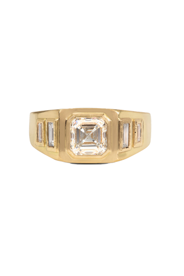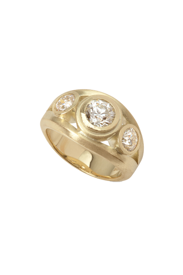 Recycled yellow solid gold or platinum with natural diamonds. and sapphire.