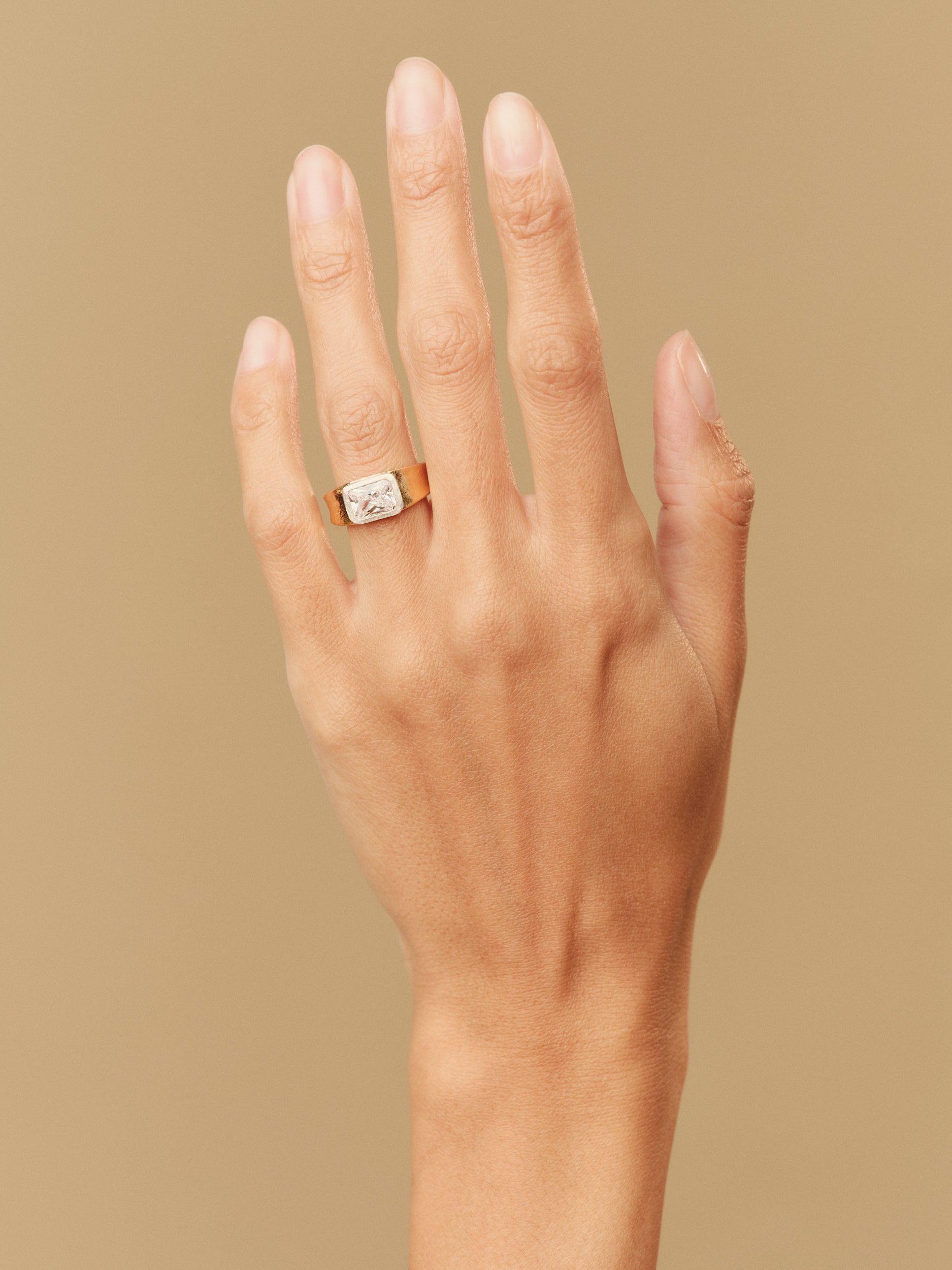 Introducing the Honey Emerald Ring - a cool yet soulful take on a traditional emerald cut engagement ring, reimagined into a beautifully bold design. A striking emerald-cut stone is carefully bolstered into our signature tapered band, its long, mirrored facets catching the light with a soft glow. It’s a piece designed to carry meaning - perfect for the bride drawn to something less traditional, but deeply personal. Available in yellow and white gold as well as a mixed metal option.