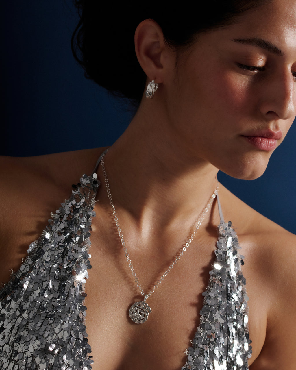 Each pair is hand-twisted and formed in our London studio, crafted from recycled sterling silver and optionally finished in Fairmined 18ct gold plating. Brought to life at the bench and hand-finished using Kitty’s signature Bronze Age hammer technique, creating that distinctive texture that has become synonymous with the brand.